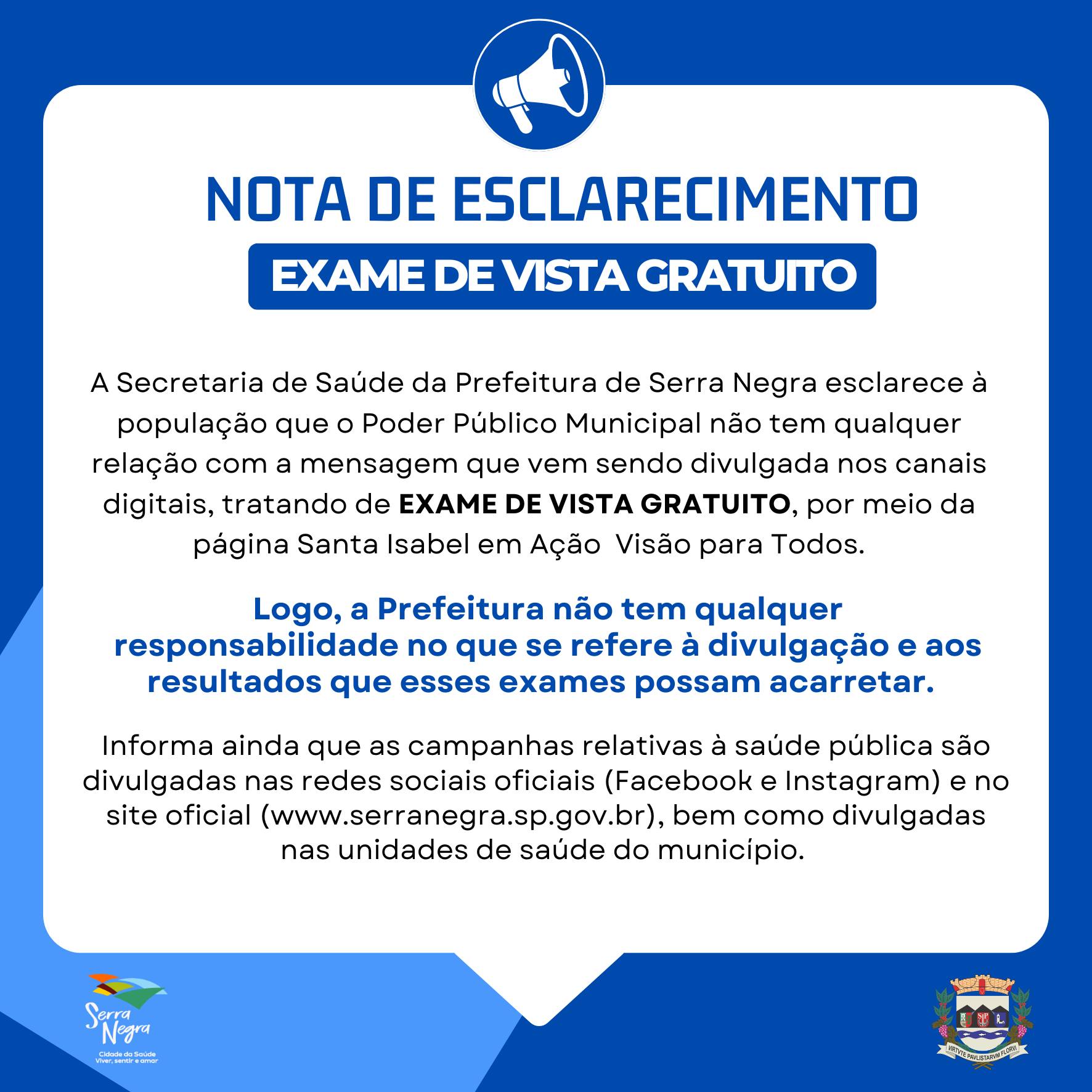 Nota de Esclarecimento - Exame de vista