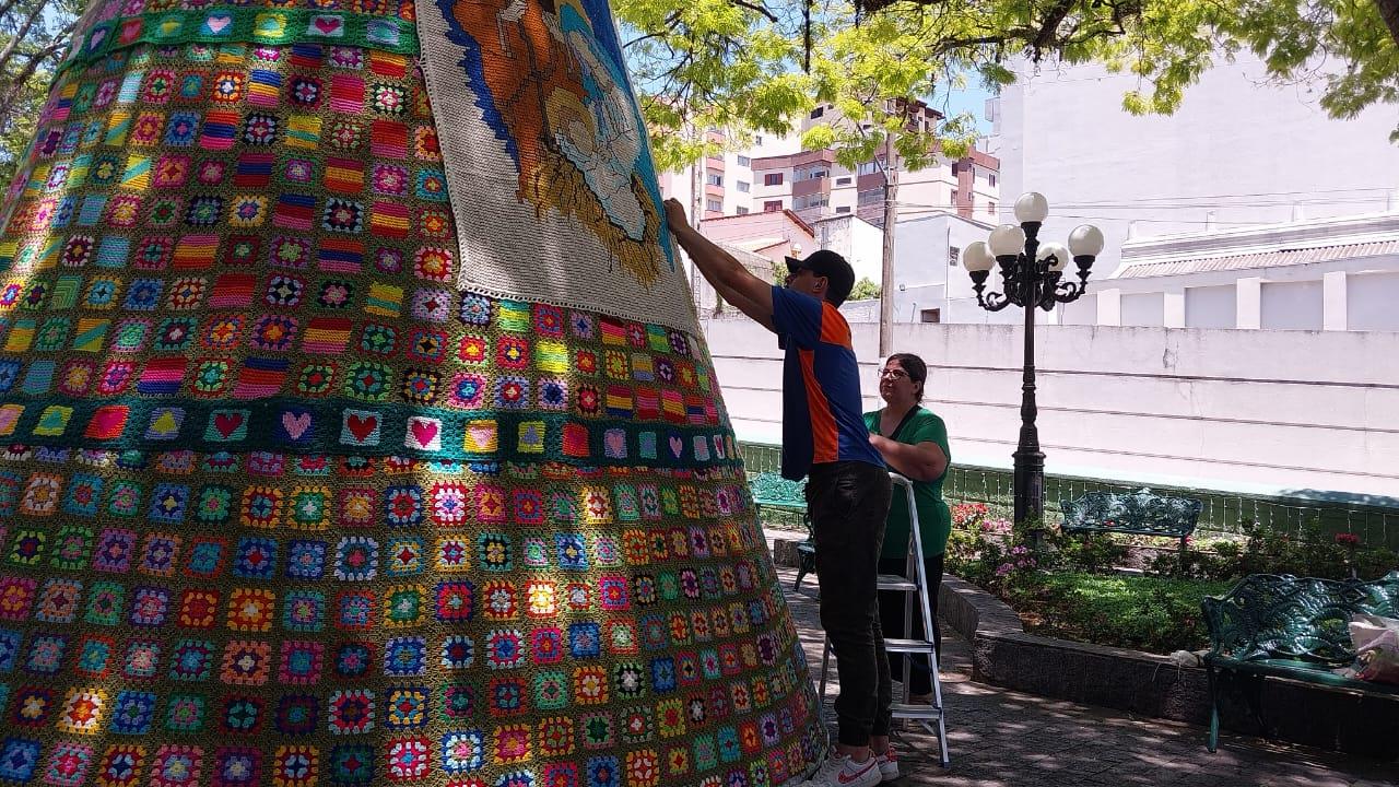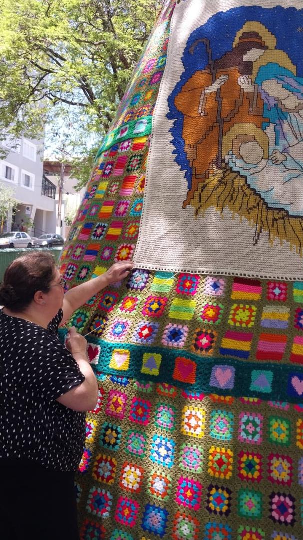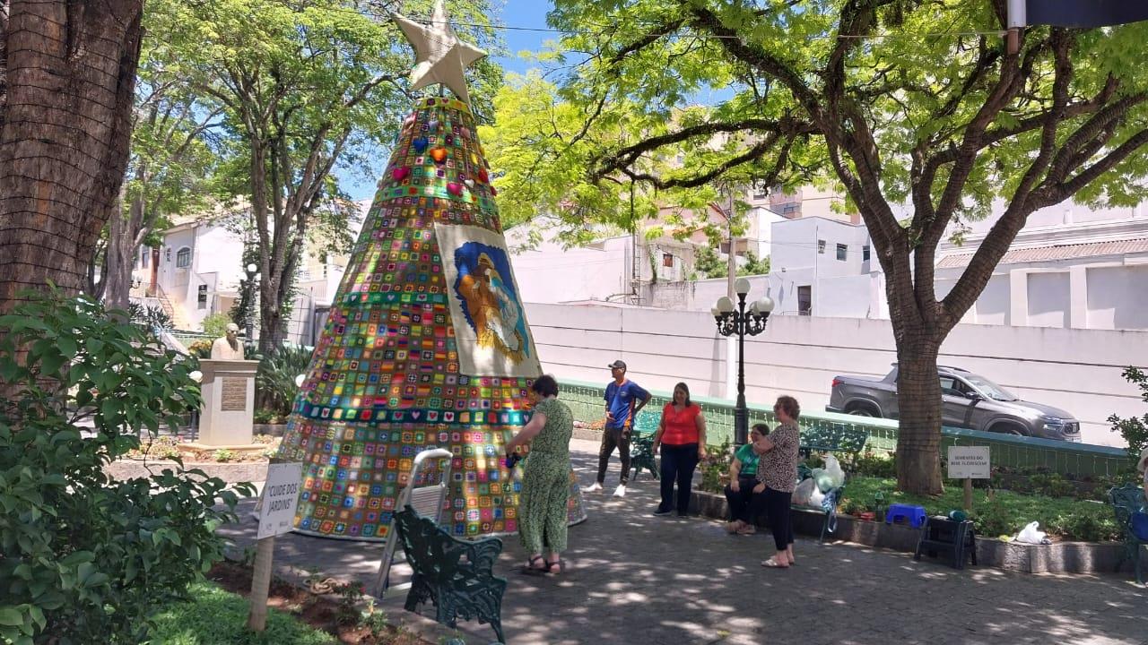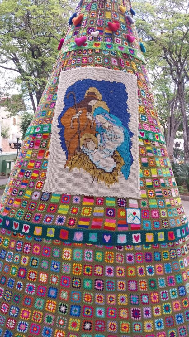 A Praça Barão do Rio Branco, em Serra Negra, volta a receber neste fim de ano uma decoração que já se tornou tradição na cidade. A árvore de Natal confeccionada inteiramente em crochê e tricô encanta moradores e visitantes, simbolizando a união entre arte, solidariedade e cuidado com o próximo. A iniciativa, que há alguns anos colore o centro da cidade com criatividade e afeto, fruto da parceria entre Fundo Social de Solidariedade e o Grupo Quadradinhos de Amor Serra Negra , com o apoio da Prefeitura de Serra Negra.