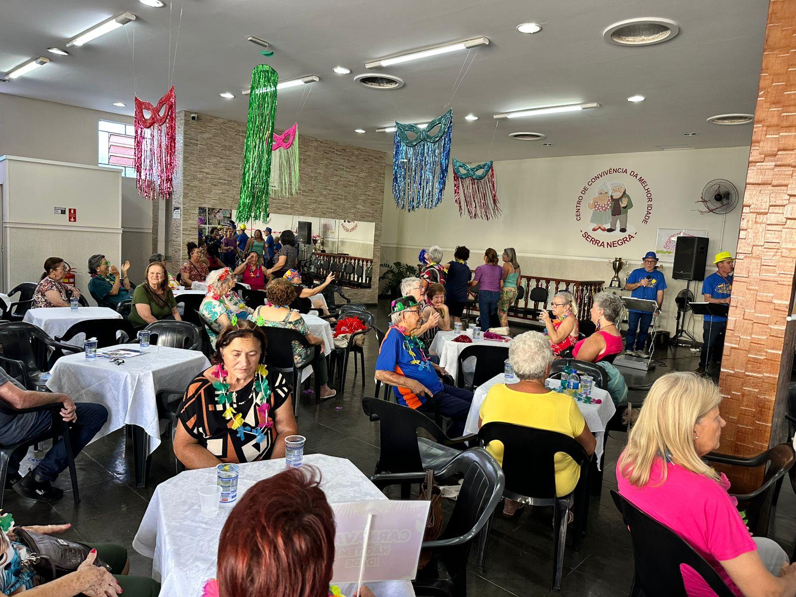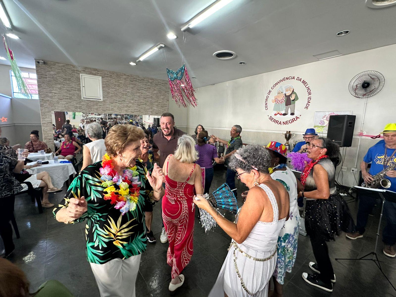 A Corporação Musical Lira de Serra Negra garantiu a animação, com marchinhas, adereços carnavalescos e um clima de descontração. A festa teve como objetivo promover a integração, o bem-estar e a valorização dos participantes. Essas ações, voltadas especialmente ao público da Melhor Idade, estimulam a convivência social e contribuem para a qualidade de vida.