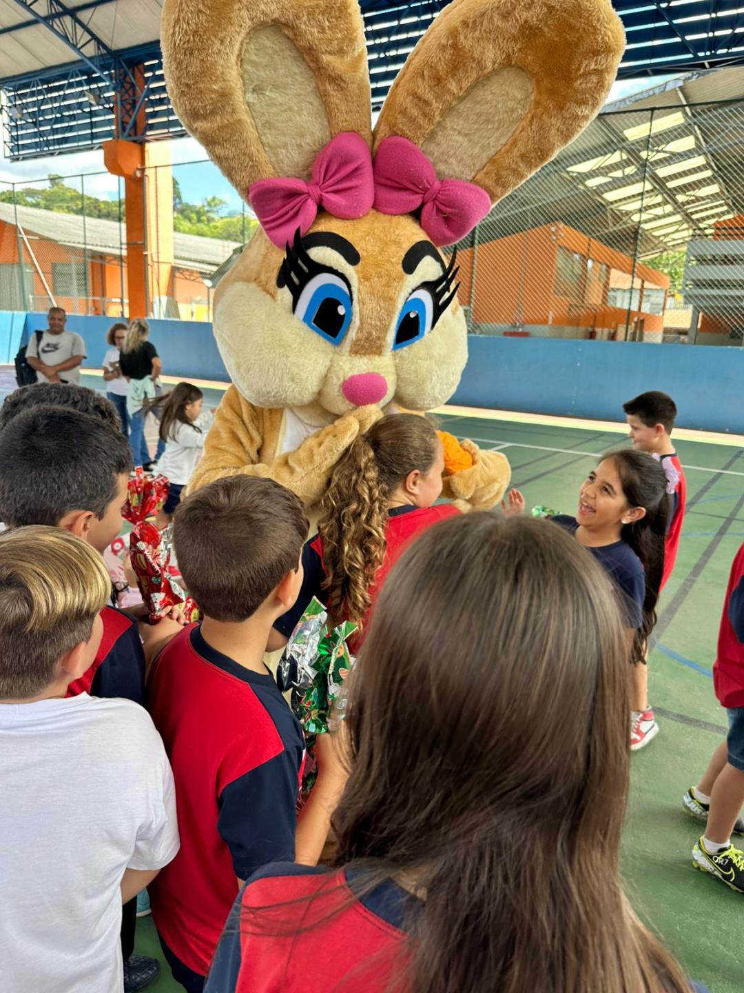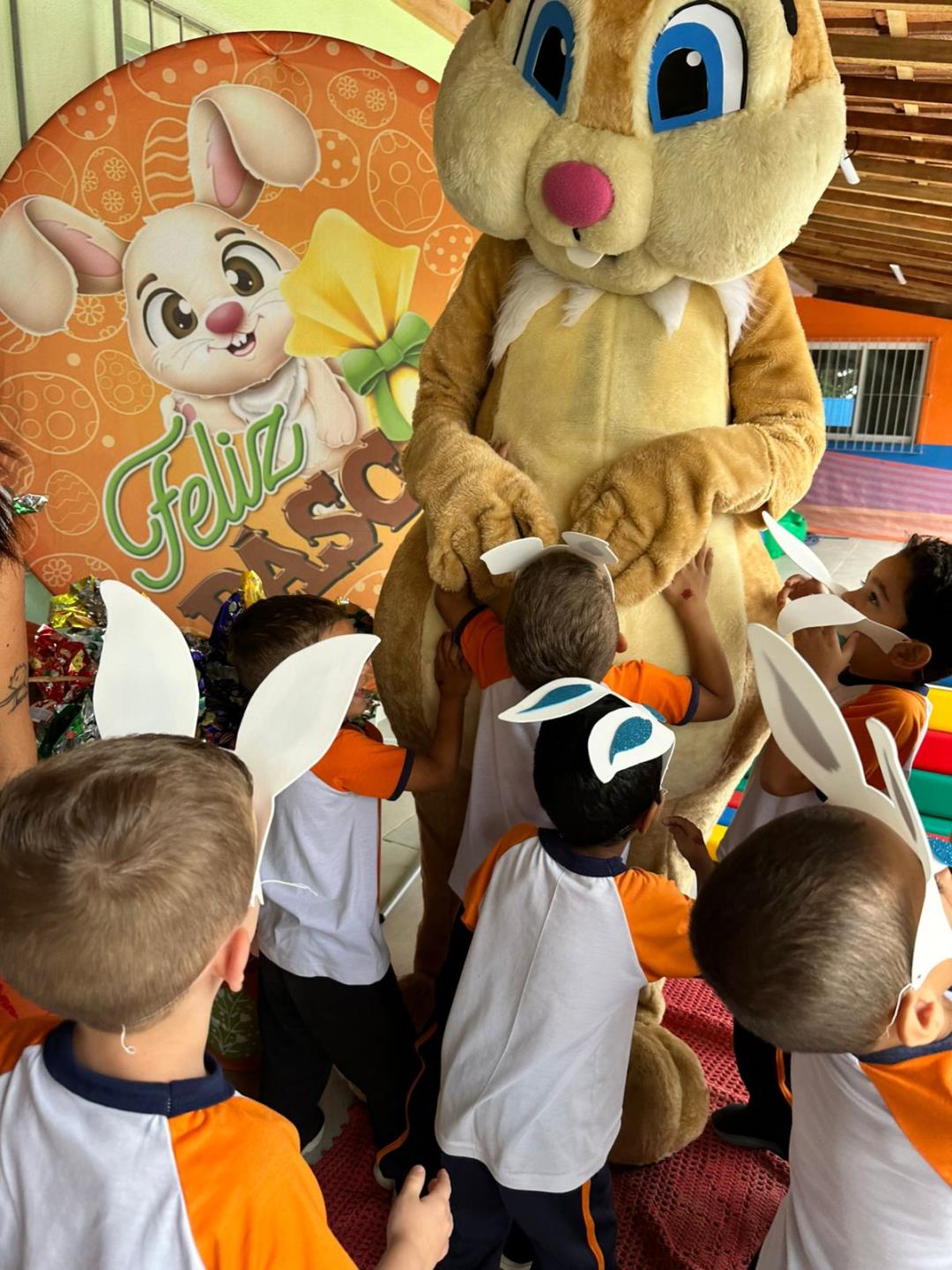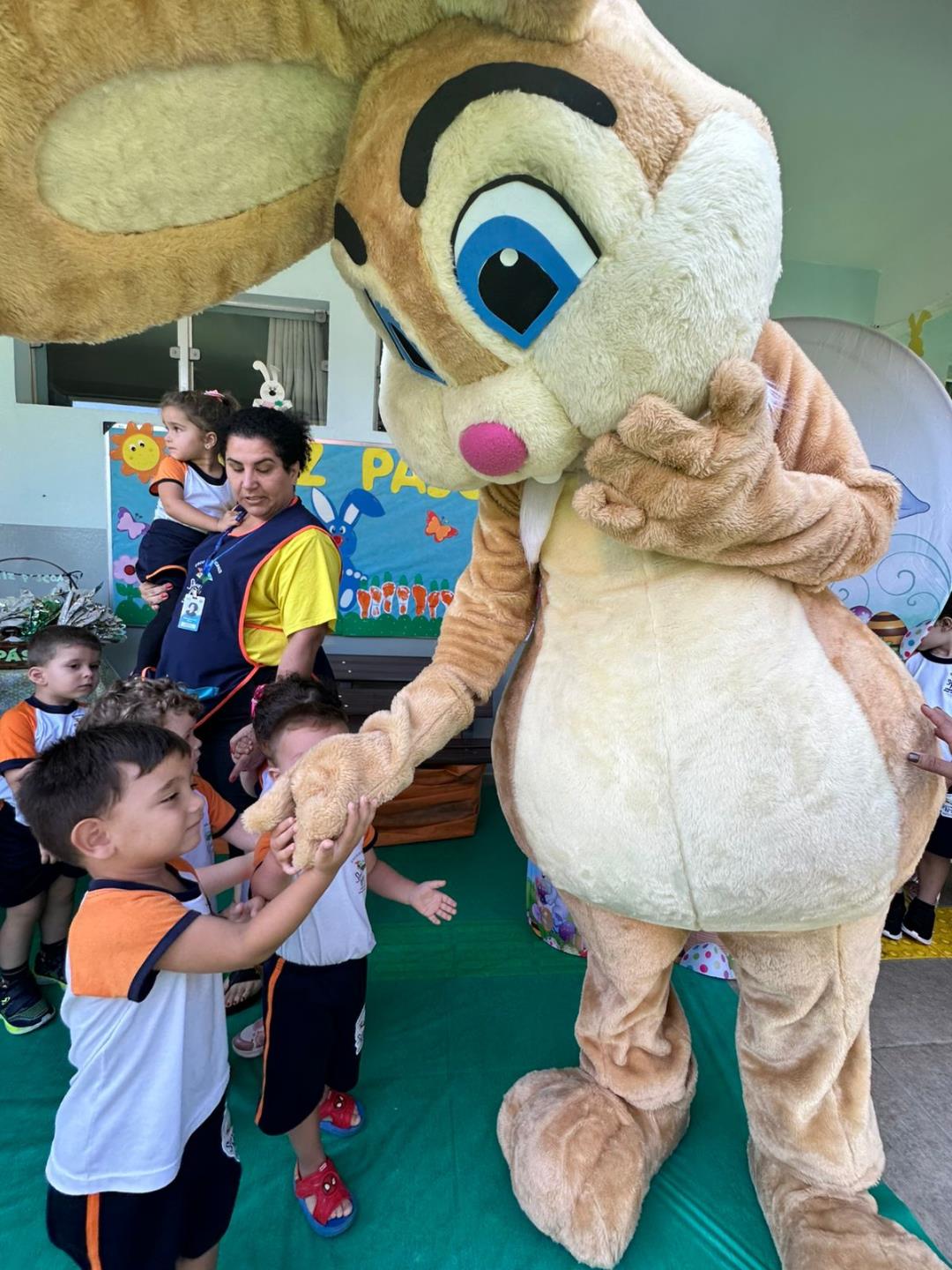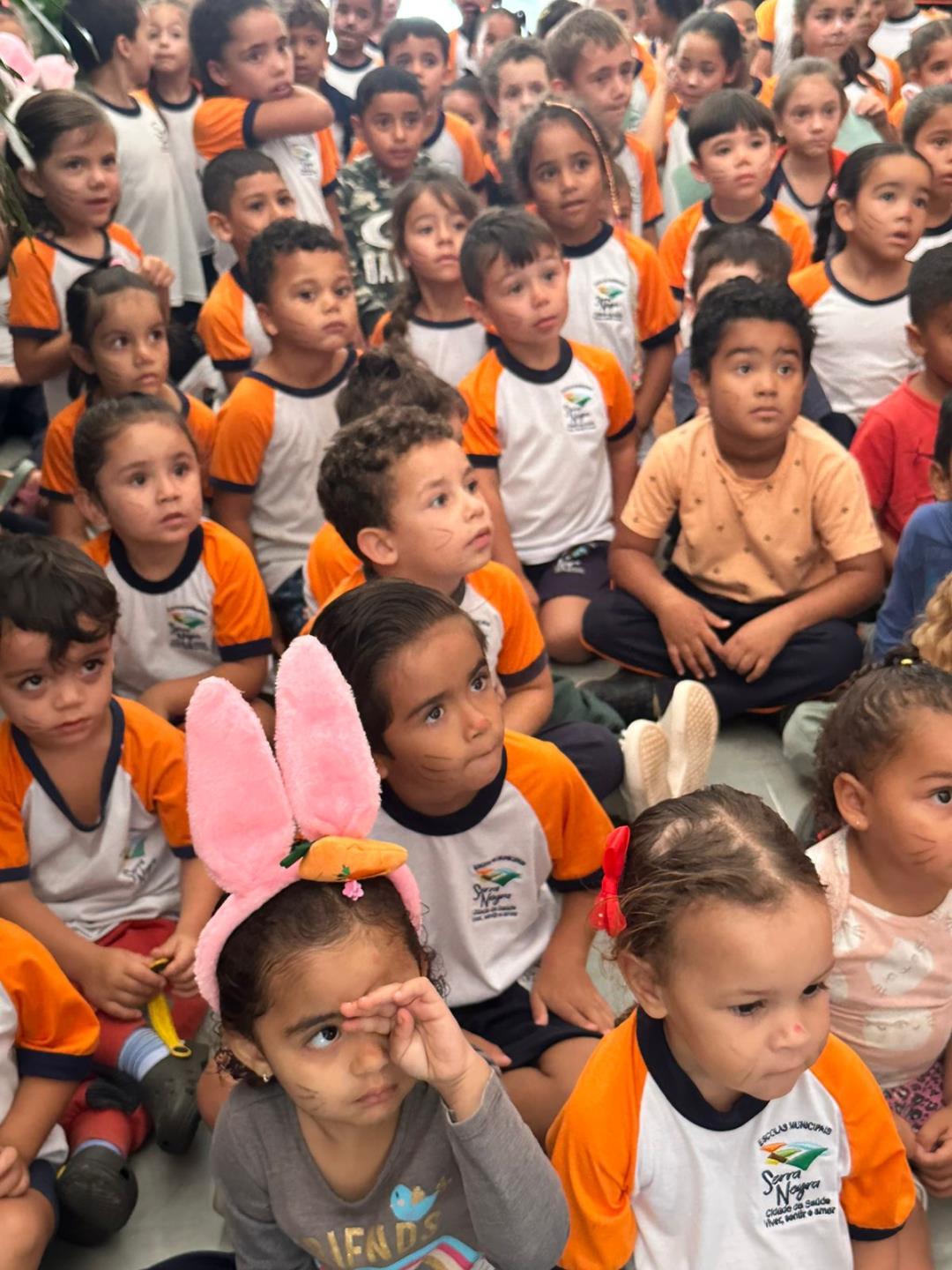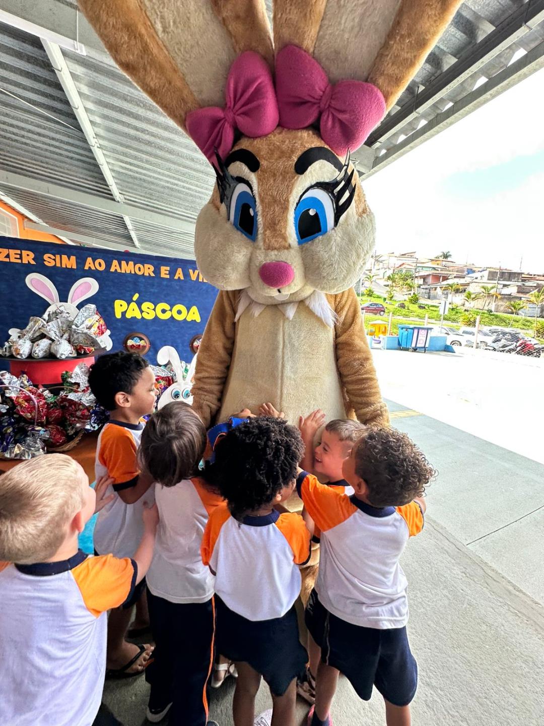 A equipe visitou todas as unidades da Rede Municipal de Ensino, incluindo também turmas da Educação de Jovens e Adultos (EJA), acompanhada por coelhos da Páscoa, que levaram muita alegria a todos.