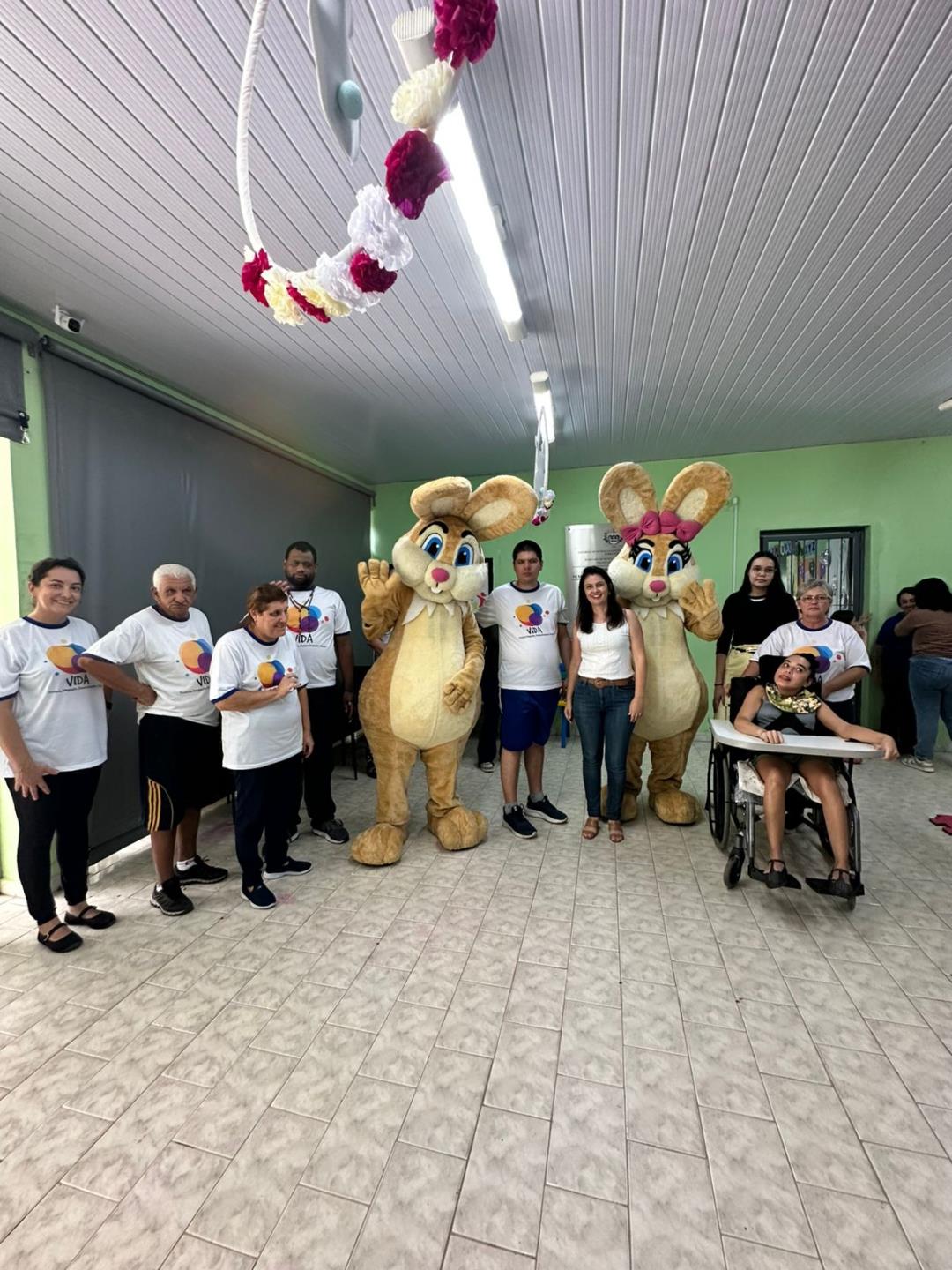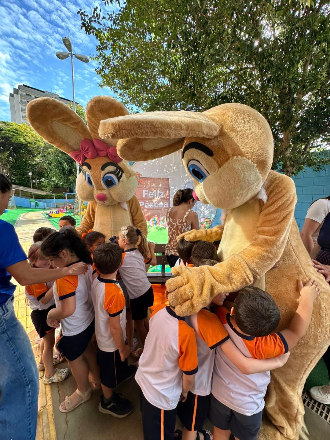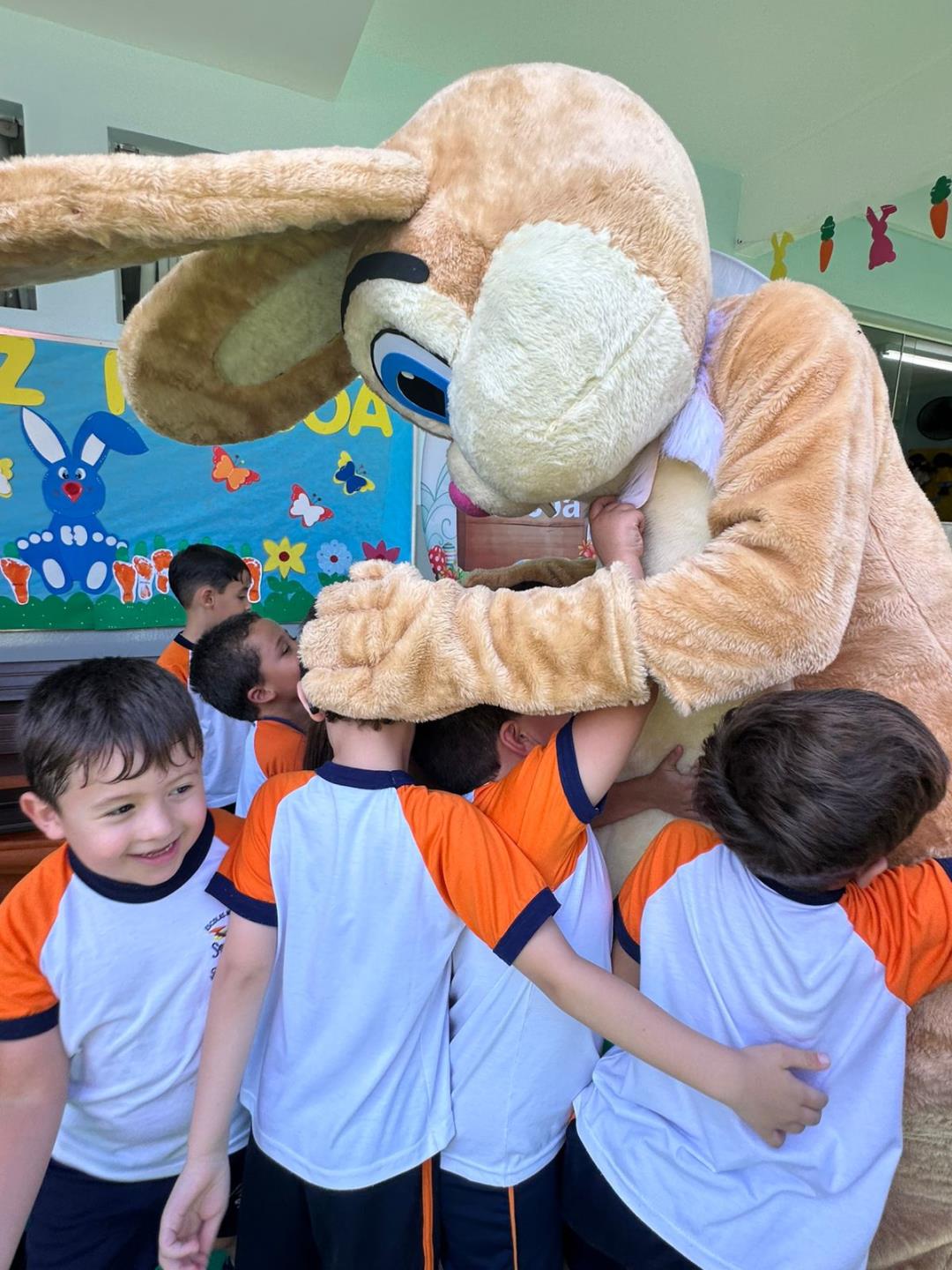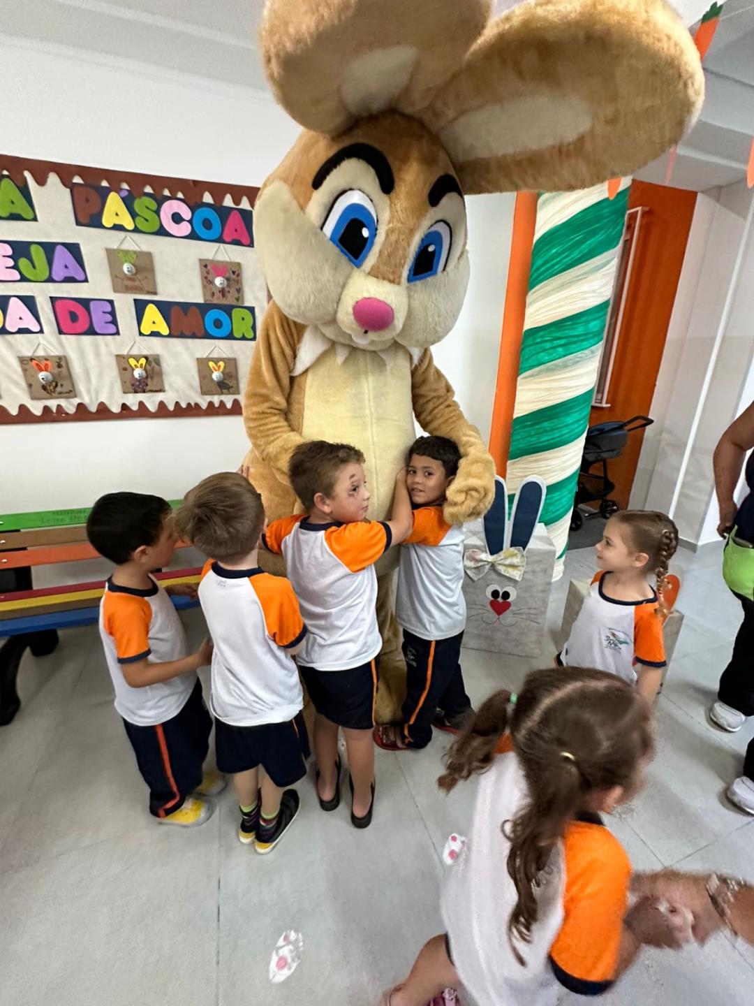A equipe visitou todas as unidades da Rede Municipal de Ensino, incluindo também turmas da Educação de Jovens e Adultos (EJA), acompanhada por coelhos da Páscoa, que levaram muita alegria a todos.