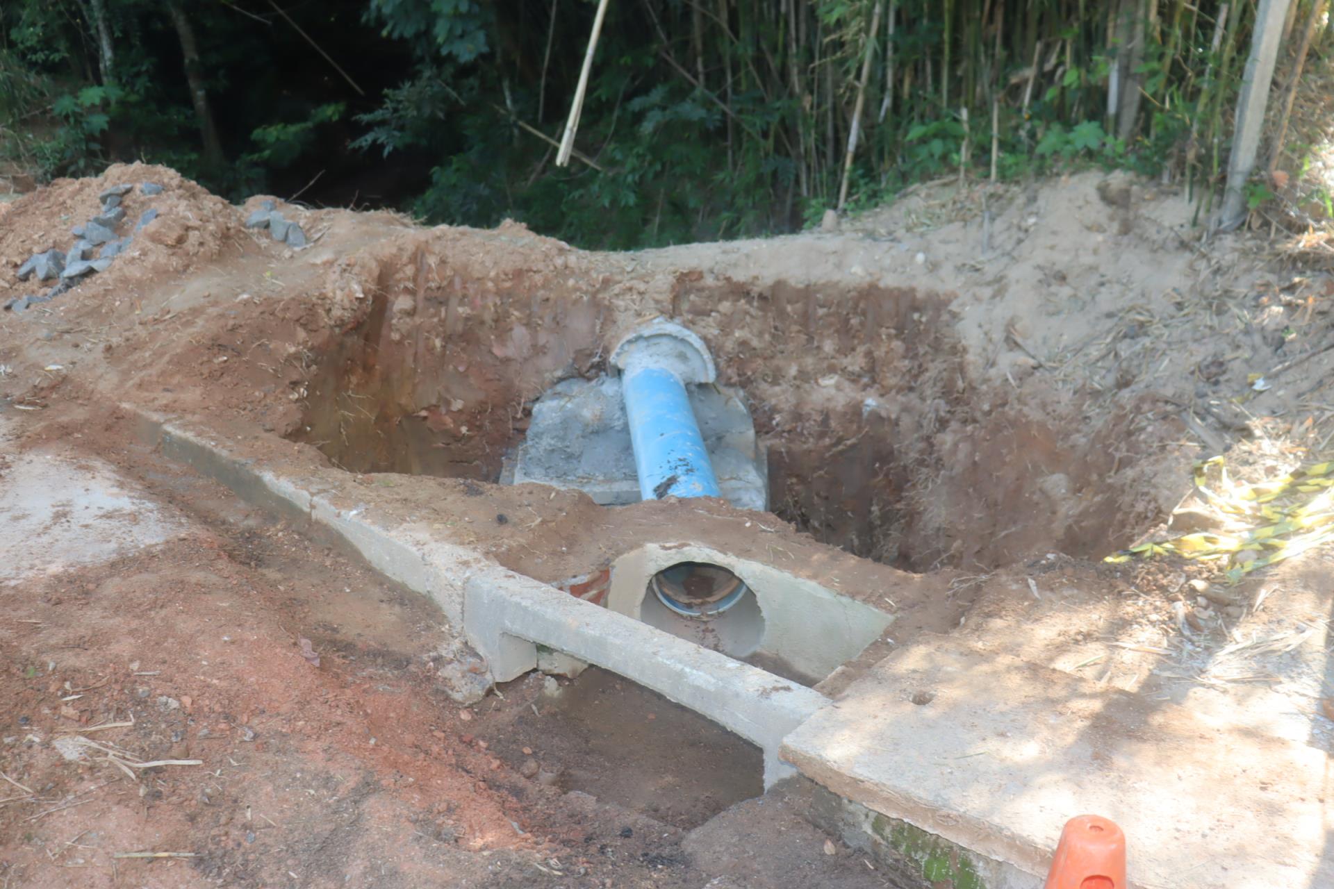 Na Rua Luigi Bernardo Marchi, Jardim Itália, uma caixa de águas pluviais e trecho de sarjeta passaram por manutenção.