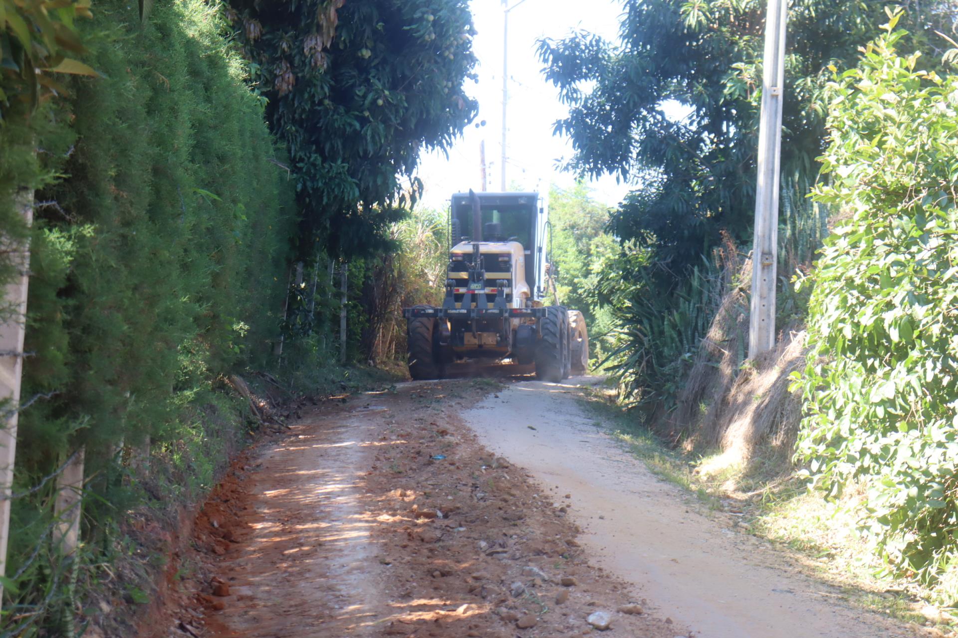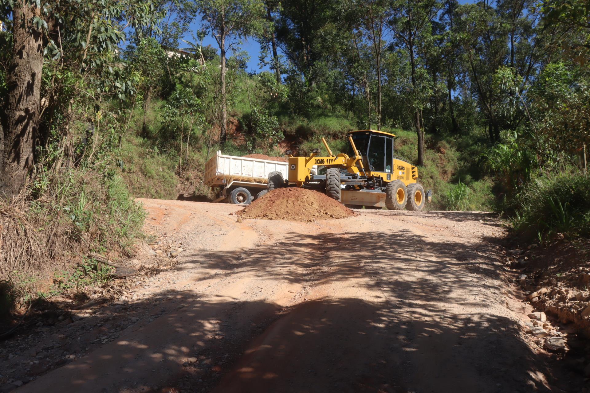 Ligando a Estrada do Bairro da Serra e a do Barrocão de Cima, a Estrada Municipal Renato Briotto Marchi recebeu manutenção com máquinas e caminhões com cascalho.