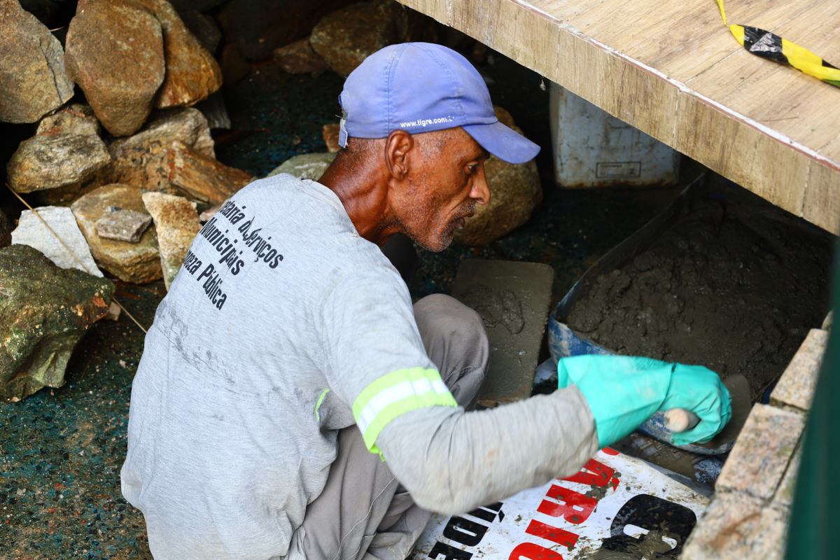 Os serviços começaram com retirada da água e realocação dos peixes. Na sequência, a equipe da Secretaria de Serviços executou a remoção do lodo por meio de caminhão limpa-fossa. Uma máquina de alta pressão foi utilizada para lavagem das paredes e do fundo do lago, eliminando resíduos acumulados. Após a limpeza, foram iniciados os reparos da estrutura de alvenaria.