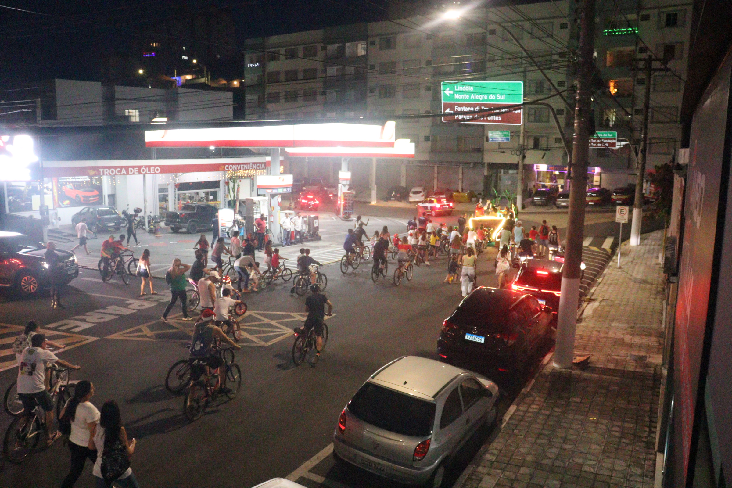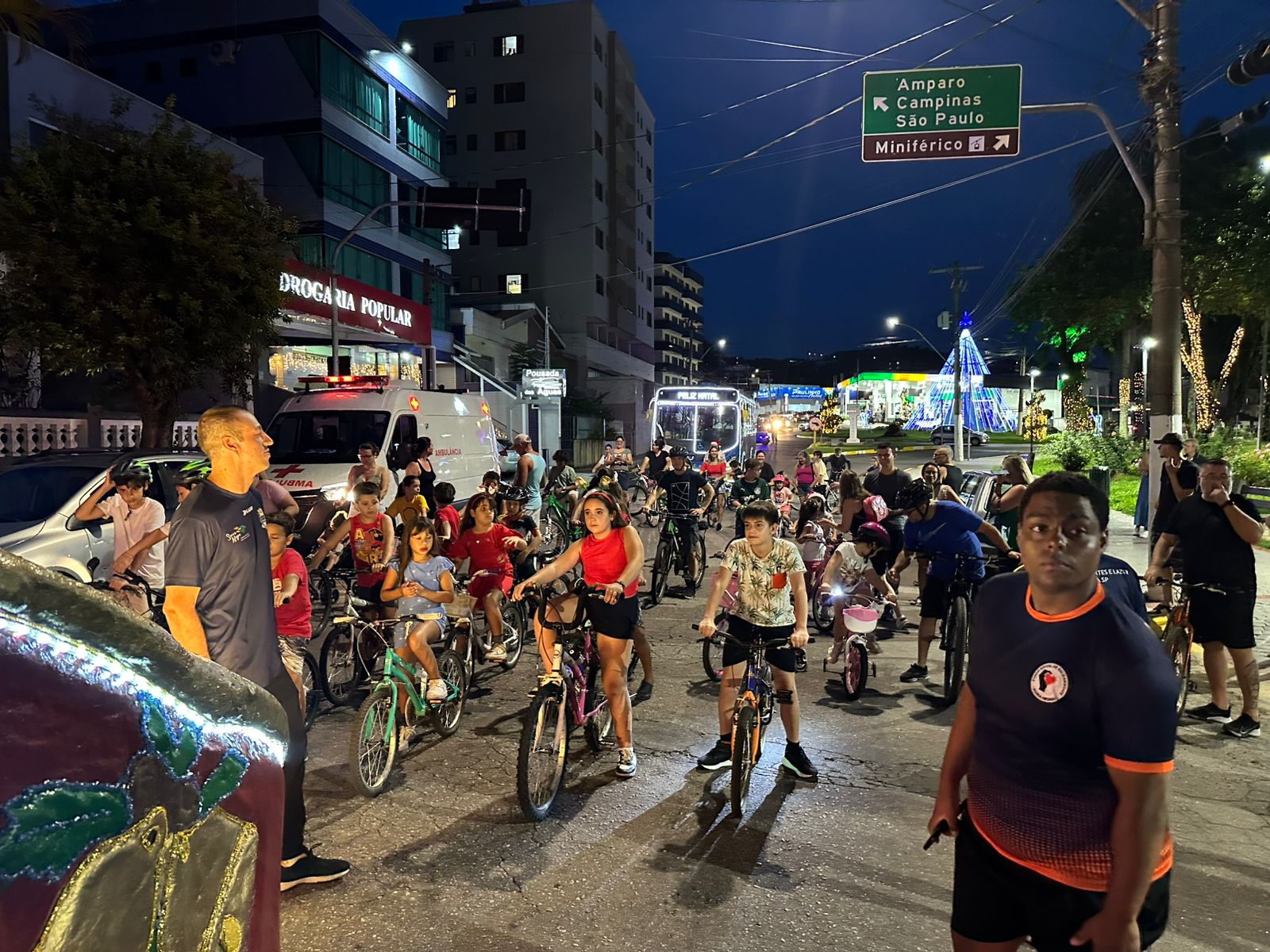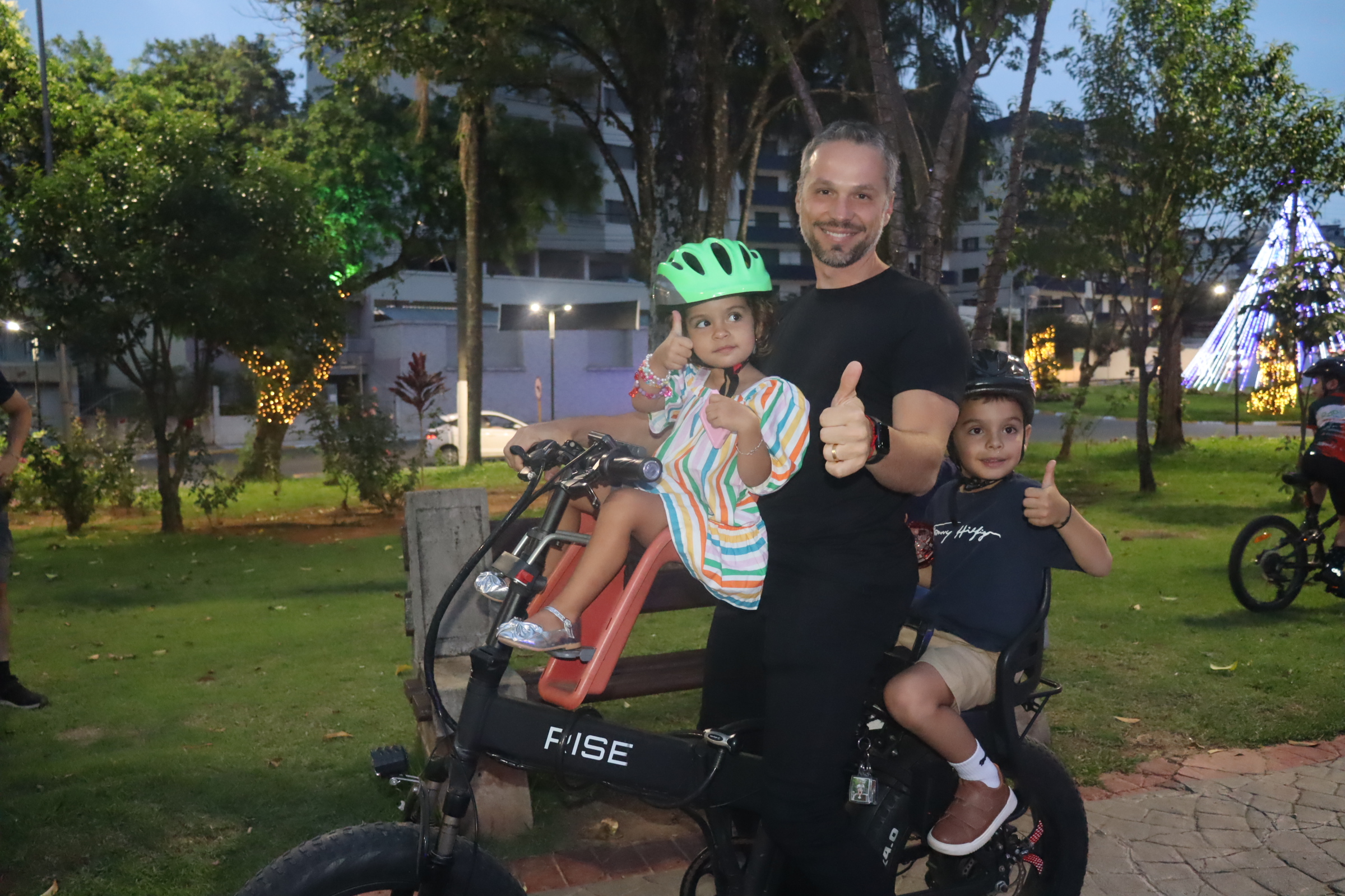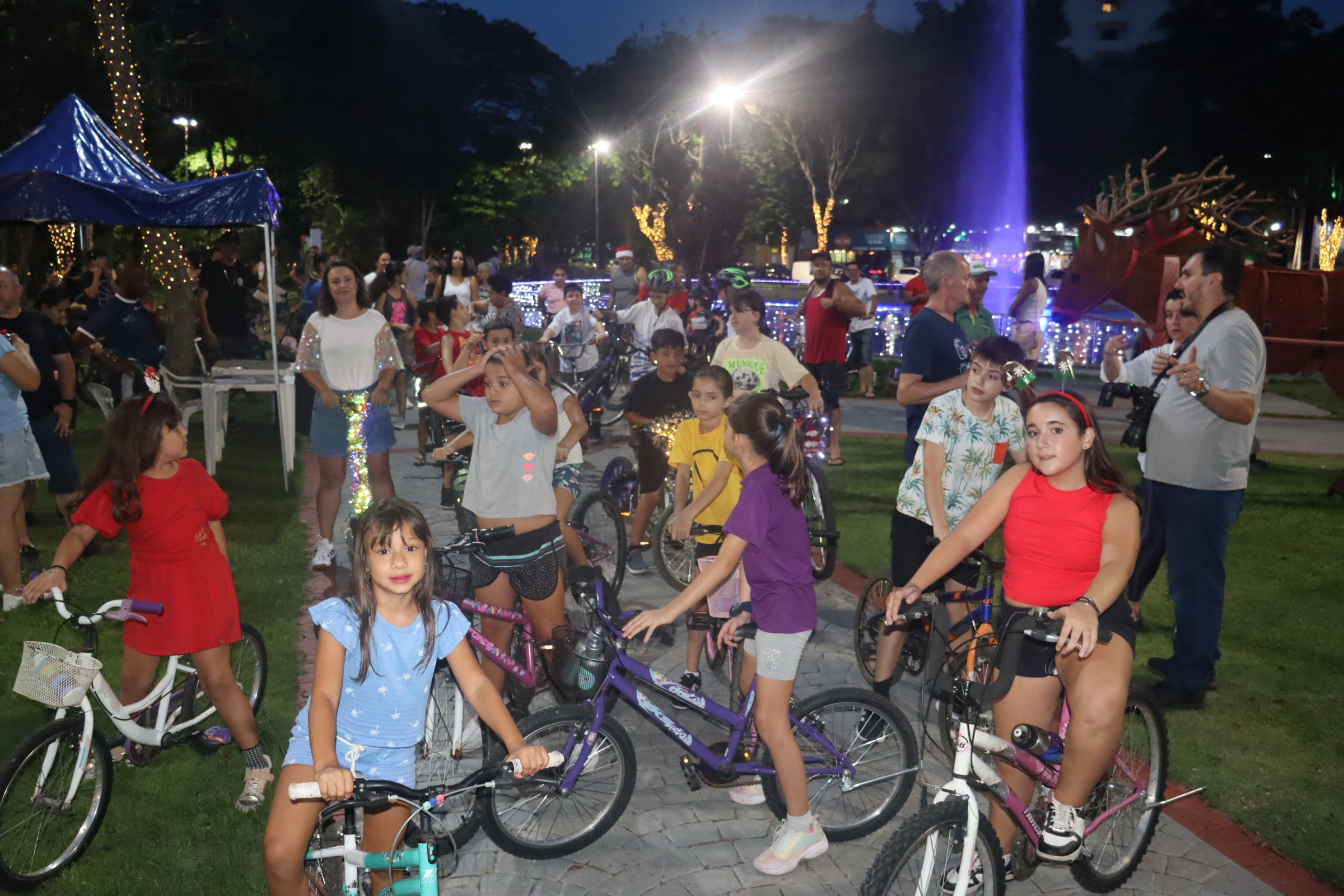 Com o trenó do Papai Noel à frente, os ciclistas partiram da Avenida Bernardino de Campos, defronte ao Espelho D’Água Cid de Abreu – Cid Serra Negra, seguiram pelas ruas centrais, retornando ao ponto de partida.