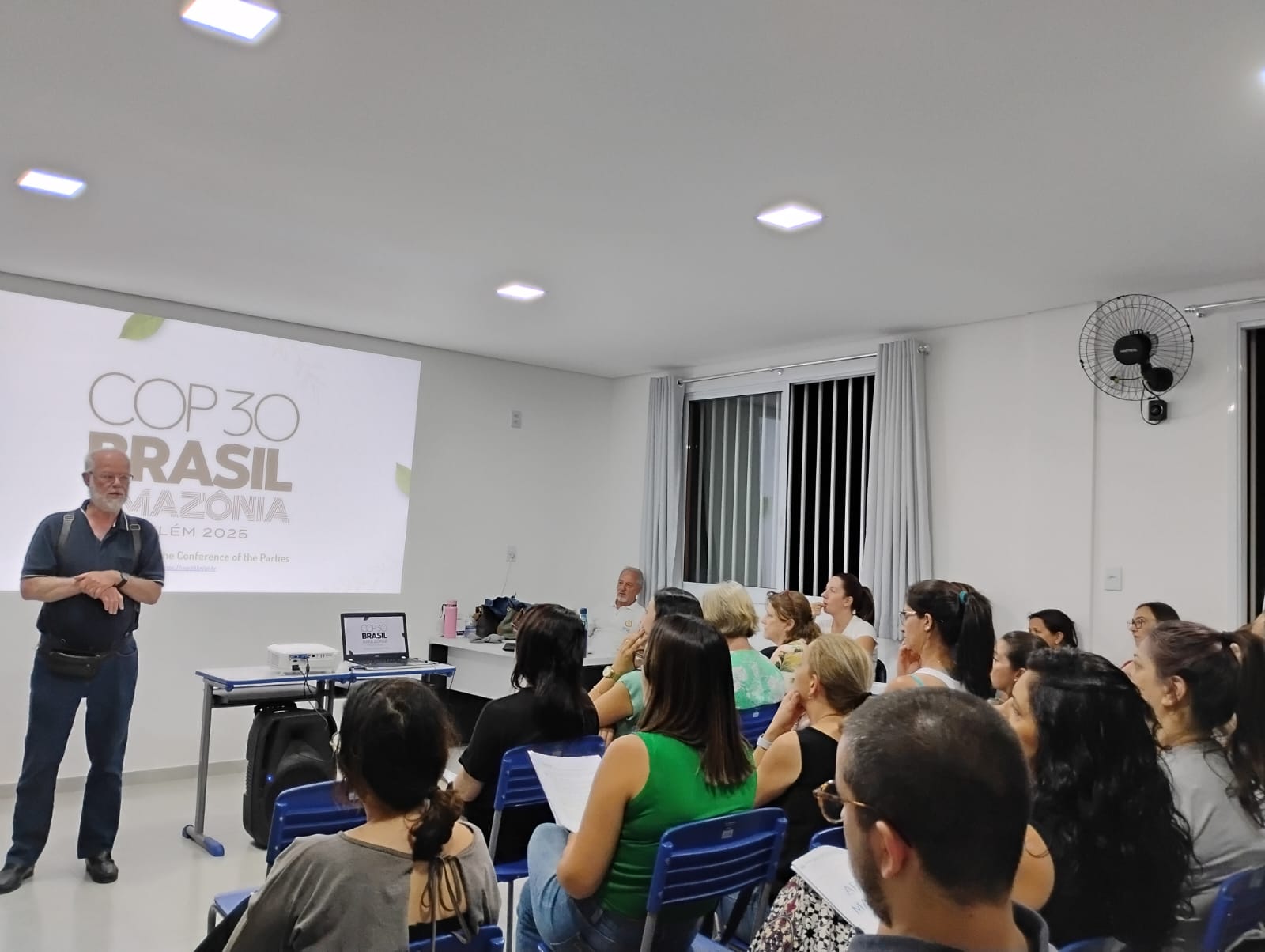 Na última semana, durante o HTPC(Horário de Trabalho Pedagógico Coletivo) noturno, os professores da rede municipal de ensino participaram de uma palestra sobre a COP 30 (30ª Conferência das Partes da Convenção-Quadro das Nações Unidas sobre Mudança do Clima), que será realizada em Belém, no Pará, entre os dias 10 e 21 de novembro de 2025.