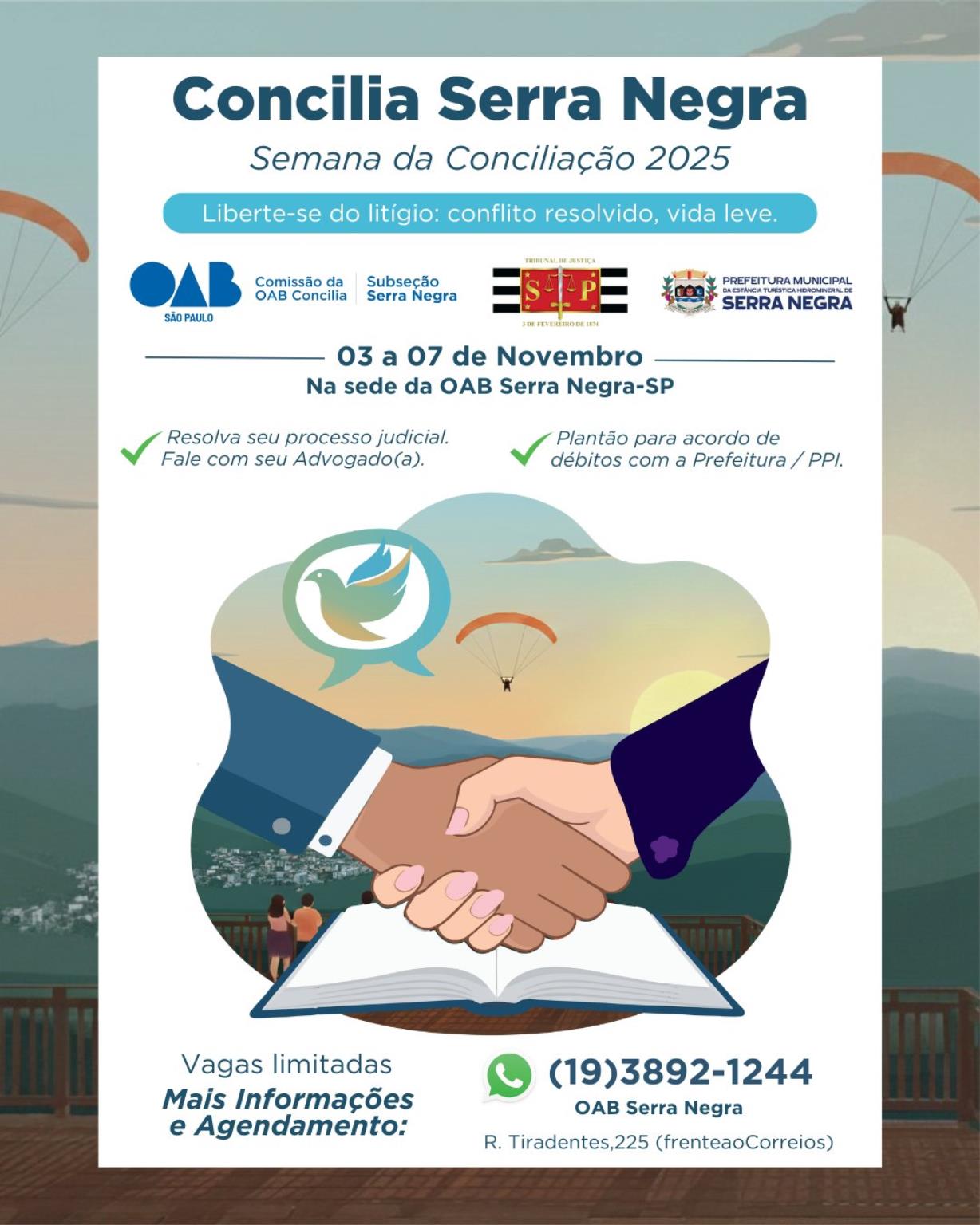 TJ-SP, OAB E PREFEITURA PROMOVEM A 1ª SEMANA DE CONCILIAÇÃO – CONCILIA SERRA NEGRA 2025